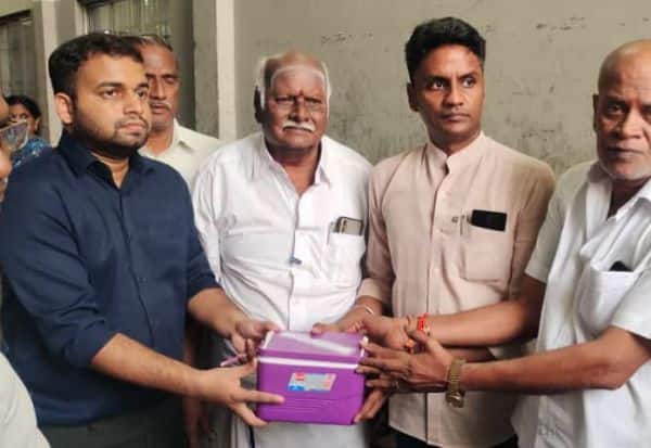 பண்ருட்டி ரோட்டரி கண்தான சேர்மன் சண்முகம் தலைமையில் மறைந்த தொழிலதிபர் சீனுவாசன் கண்தானமாக பெற்று புதுச்சேரி அரவிந்த் மருத்துவ மனைக்கு வழங்கினர்.